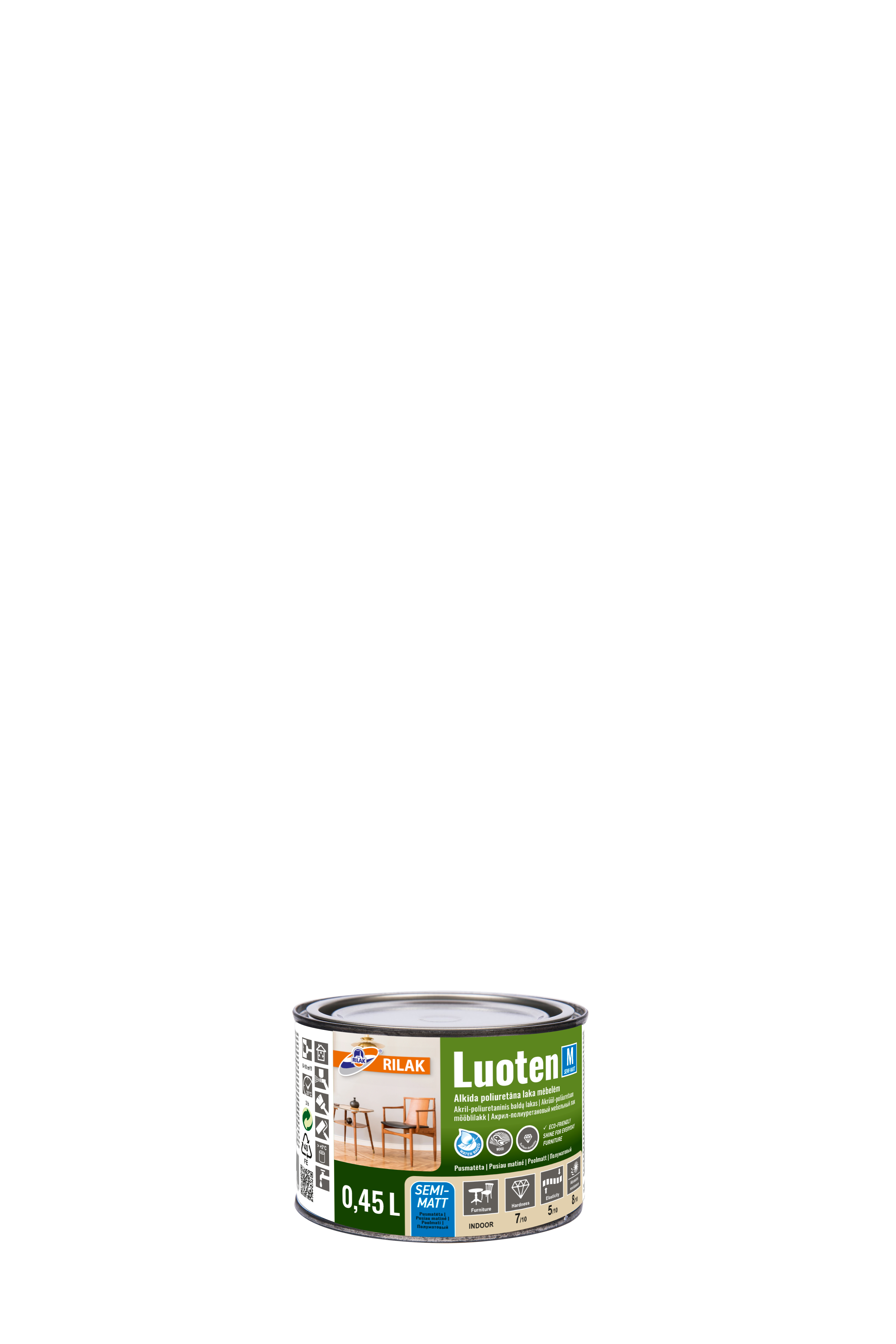 Vienkomponentu ar ūdeni atšķaidāma mēbeļu laka uz akrilātu – poliuretānu dispersijas bāzes. Veido cieto nodilumizturīgu pārklājumu, noturīgu pret periodisku sadzīves mazgāšanas līdzekļu iedarbību. Aizsargā koksni no mitruma un sadzīves piesārņojuma, saglabā tās dabisko skaistumu, izceļ tekstūru un piešķir virsmai estētisku, koptu izskatu.